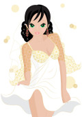 brunetka dziewczynka w czerwonej sukience wieczorem
