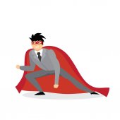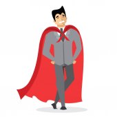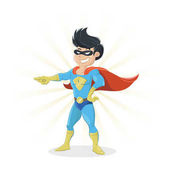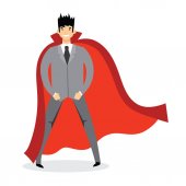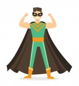Ilustracja wektorowa w płaski kształt mężczyzna superbohatera w zabawny komiks kostium