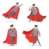 Ilustracja wektorowa płaska biznesmen superbohatera z czerwony płaszcz.