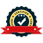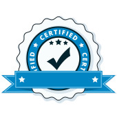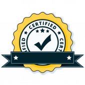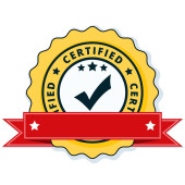 Certyfikat przycisk znak z czerwoną wstążką, wektor, ilustracja