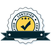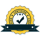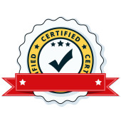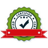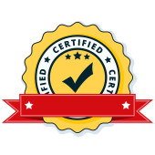 Certyfikat przycisk znak z czerwoną wstążką, wektor, ilustracja