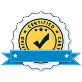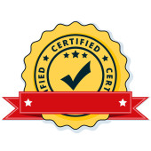 Certyfikat przycisk znak z czerwoną wstążką, wektor, ilustracja