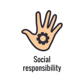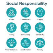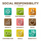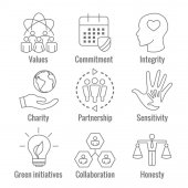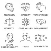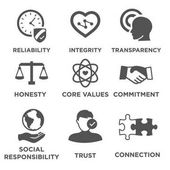 Społeczna odpowiedzialność solidny zestaw ikon w uczciwość, integralność & Kol