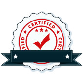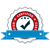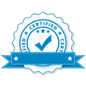 Certyfikat przycisk znak z czerwoną wstążką, wektor, ilustracja