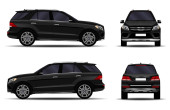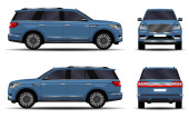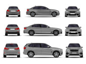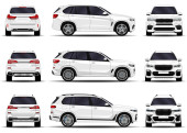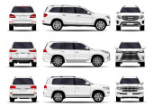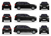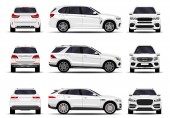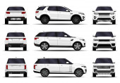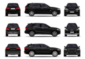 Realistyczne SUV-y ustawione. Widok z przodu; widok z boku; widok z tyłu.