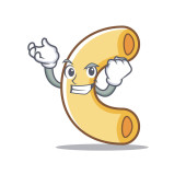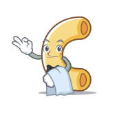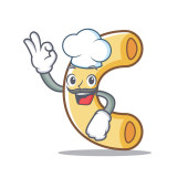Szef kuchni z jedzenia makaronu maskotka stylu cartoon