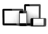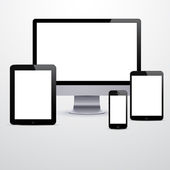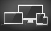 Ikony urządzeń - smartfona, tabletu, laptopa i komputera stacjonarnego. Ilustracja wektorowa responsive web design.