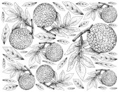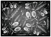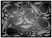 Ręcznie rysowane jabłko i owoce Diospyros Rhombifolia na tablicy