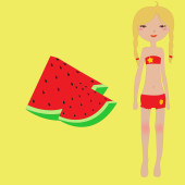 Zdjęcie "kreskówka dziewczyna jedzenia arbuza. ilustracja wektorowa" może być wykorzystywane do celów osobistych i komercyjnych zgodnie z warunkami zakupionej licencji Royalty-free. Obraz jest dostępny do pobrania w jakości wysokiej rozdzielczości do 5760x3840.