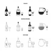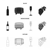 Kieliszek czerwonego wina, szampana, dzbanek wina, kilka. Produkcja wina zestaw kolekcji ikon w czarny, czarno-biały, www ilustracji symbol wektor zarys styl.
