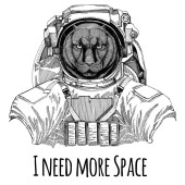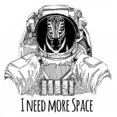 Camelopard, żyrafa astronauta. Skafander kosmiczny. Ręcznie rysowane obraz Lwa tatuaż, t-shirt, godło, odznaka, logo przedszkola patch plakat Odzież dziecięca