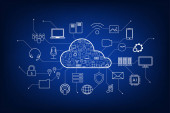 Cloud Computing Design Concept - cyfrowa sieć połączeń, technologia tło