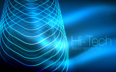 Zarys sześciokątów, świecące kształty geometryczne, cyfrowy techno streszczenie tło