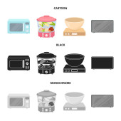 Kuchnia wyposażenie kreskówka, czarny, konspektu, płaskie ikony w kolekcja zestaw do projektowania. Kuchnia i akcesoria symbol web czas ilustracja wektorowa.