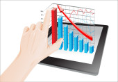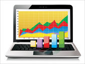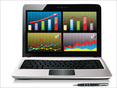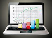laptopa Wyświetlono arkusza szkło powiększające z niektórych wykresów 3d nad nim