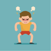 Ładny chłopak dostaje mad zły walki z wieje od uszu wyrażenie, ilustracji wektorowych.