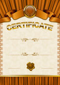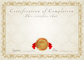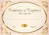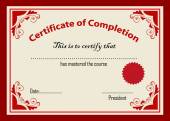 Poziome czerwone poświadczenie (dyplom) (szablon) złoty kwiatowy wzór i granicy