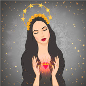 Piękna dziewczyna z koroną księżyca. Kobieta portret albo noc bogini. Ilustracja wektorowa na białym tle. Fantasy, duchowość, okultyzmu, tatuaż. Modny wydruku.