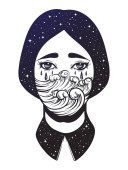 Ilustracja wektorowa dziwne dziewczyny ze łzami czarny i ciemny kałuża z gwiazdami. Graficzny grafika Noir. Projektowanie znaków. Fantasy, piękno, naklejek w stylu boho.