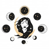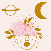 Ilustracja wektorowa dziwne dziewczyny ze łzami czarny i ciemny kałuża z gwiazdami. Graficzny grafika Noir. Projektowanie znaków. Fantasy, piękno, naklejek w stylu boho.