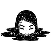 Zdjęcie "Ilustracja wektorowa dziwne dziewczyny ze łzami czarny i ciemny kałuża z gwiazdami. Graficzny grafika Noir. Projektowanie znaków. Fantasy, piękno, naklejek w stylu boho." może być wykorzystywane do celów osobistych i komercyjnych zgodnie z warunkami zakupionej licencji Royalty-free. Obraz jest dostępny do pobrania w jakości wysokiej rozdzielczości do 5760x3840.