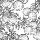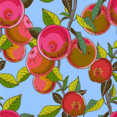 Wzór z liści drzewa gałąź, apple i apple. Sztuka ilustracji wektorowych. Rysunek.