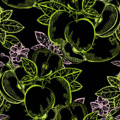 Wzór z liści drzewa gałąź, apple i apple. Sztuka ilustracji wektorowych. Rysunek.
