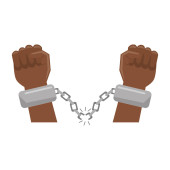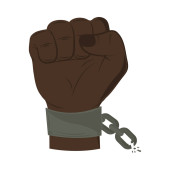 Zniesienie niewolnictwa. Ramię slave z pęknięte kajdany. Złamane cha