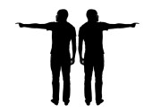 Sylwetka wektor dwóch mężczyzn pokazuje palcem na bok