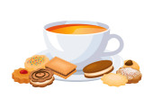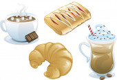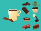 Filiżanka jedzenie kawa, cappuccino, latte i czekolady. Czas Słodkie desery.