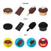 Zdjęcie "Amerykańskie ciasteczka, kawałek ciasta, cukierki, wafel kanalików. Czekoladowe desery zestaw kolekcji ikon w czarny, www ilustracji symbol wektor kreskówka styl." może być wykorzystywane do celów osobistych i komercyjnych zgodnie z warunkami zakupionej licencji Royalty-free. Obraz jest dostępny do pobrania w jakości wysokiej rozdzielczości do 5760x3840.