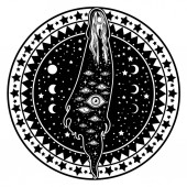 Zdjęcie "Ładna dziewczyna kąpieli w Pucharze z gwiazd i Księżyca w stylu ciemny tatuaż, wektor, ilustracja " może być wykorzystywane do celów osobistych i komercyjnych zgodnie z warunkami zakupionej licencji Royalty-free. Obraz jest dostępny do pobrania w jakości wysokiej rozdzielczości do 5760x3840.
