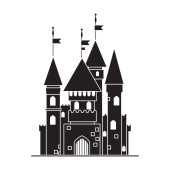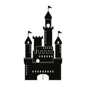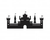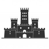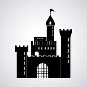 Średniowieczny zamek wektor. Sylwetka wieży zamku w stylu płaski.