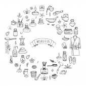 Ręcznie rysowane doodle masażu i Spa ikony zestaw ilustracji wektorowych symboli kolekcji kreskówka uroda Pielęgnacja koncepcja elementów opieki zdrowotnej Wellness zabieg relaksujący masaż ciała Pielęgnacja skóry styl życia Spa