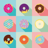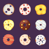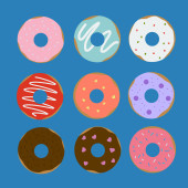 Catoon pączki z szkliwo wektor ilustracja na białym tle. Słodki deser.