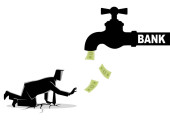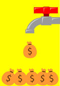 Biznesmen, stojąc pod wodą dotknij przepływów z banknotów