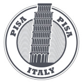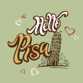 Podróży. Włochy. Piza. Etykiety obiektów. Krzywa Wieża w Pizie. Szkic. Dziedzictwa architektonicznego kraju. Wektor