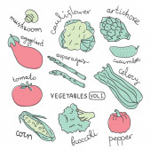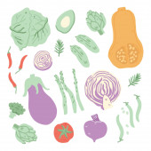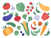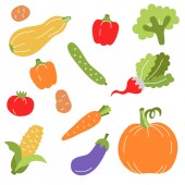 Zdjęcie "Ręcznie rysowane kolorowy warzyw. Szkic styl wektor zbiory. Warzywa płaski zestaw ikon: ogórek, marchew, cebula, pomidor, rzodkiewka, pieprz, ziemniaków, groszek, kukurydza, dynia, Sałatka. " może być wykorzystywane do celów osobistych i komercyjnych zgodnie z warunkami zakupionej licencji Royalty-free. Obraz jest dostępny do pobrania w jakości wysokiej rozdzielczości do 5760x3840.