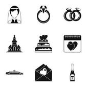 Zdjęcie "Zestaw ikon ślub, prosty styl" może być wykorzystywane do celów osobistych i komercyjnych zgodnie z warunkami zakupionej licencji Royalty-free. Obraz jest dostępny do pobrania w jakości wysokiej rozdzielczości do 5760x3840.