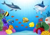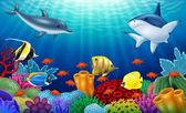 Zdjęcie "Rekiny kreskówka z tropikalny tło pod wodą " może być wykorzystywane do celów osobistych i komercyjnych zgodnie z warunkami zakupionej licencji Royalty-free. Obraz jest dostępny do pobrania w jakości wysokiej rozdzielczości do 5760x3840.