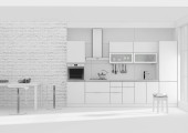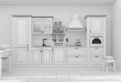 Kuchnia wnętrze siatka 3D rendering