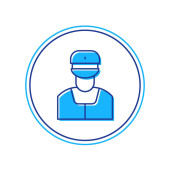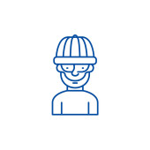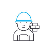 Budowy pracownik liniowy ikona koncepcja. Linia konstrukcyjna pracownik wektor znak, symbol, ilustracja.