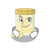 Ilustracja wektorowa kreskówka maskotka słoik do kremu kelner