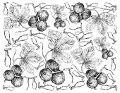 Tropikalne owoce, ilustracja Tapety odręczny szkic Seagrape świeże, Baygrape lub Coccoloba Uvifera owoce wiszące na gałęzi drzewa na białym tle. Bogate w witaminy A, B, C, K i Beta-karoten.