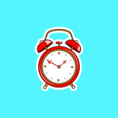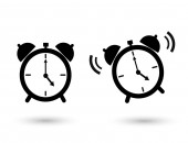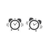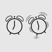 Budzik wektor ikona na białym tle na szarym tle, styl konturu linii prostych, budzik dzwoni ikona nowoczesny design 2.