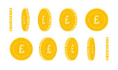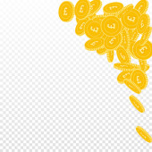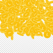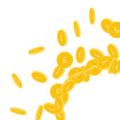 Funt brytyjski monet objętych rozproszenia pływające Gbp monety na białym tle, autentyczny rozrzucone