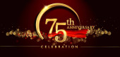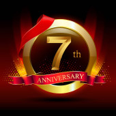 7 Złoty jubileusz celebracja logo na czerwonym tle, ilustracji wektorowych