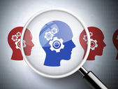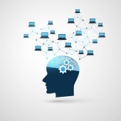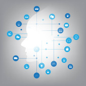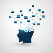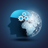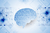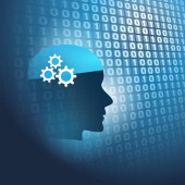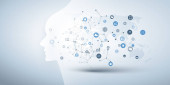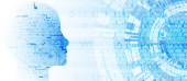Nowoczesny styl futurystycznej i uczenia głębokiego, sztuczna inteligencja koncepcja 3d tło wzorzyste cyfrowych bitów i ludzkiej głowy