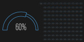 Zestaw z żyłką sektora diagramów procent od 0 do 100 gotowych do użycia dla web design, interfejs użytkownika (Ui) lub Infografika - wskaźnik z niebieskim
