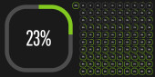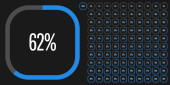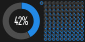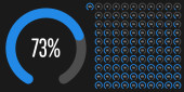Zestaw diagramów procentowych sześciokąt od 0 do 100 gotowych do użycia dla web design, interfejs użytkownika (Ui) lub Infografika - wskaźnik z niebieskim